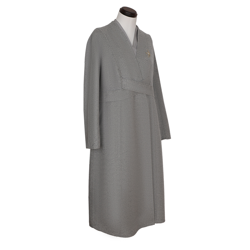 银灰色V领立体交叉腰带女士中长款大衣.jpg